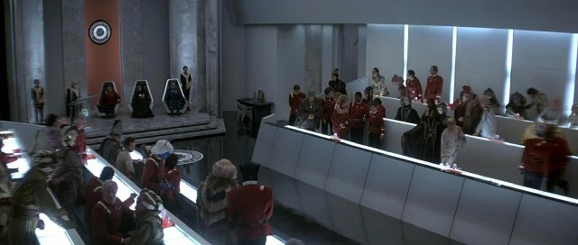 - J'mpok fordert im Hohen Rat, dass die Romulaner und die Föderation für ihr Vorgehen gegen die Klingonen zahlen müssen. Trotz hartem Druck durch Hardliner im Rat weist Kanzler Martok jegliche Vergeltungsmaßnahme gegen die Föderation zurück.[1]