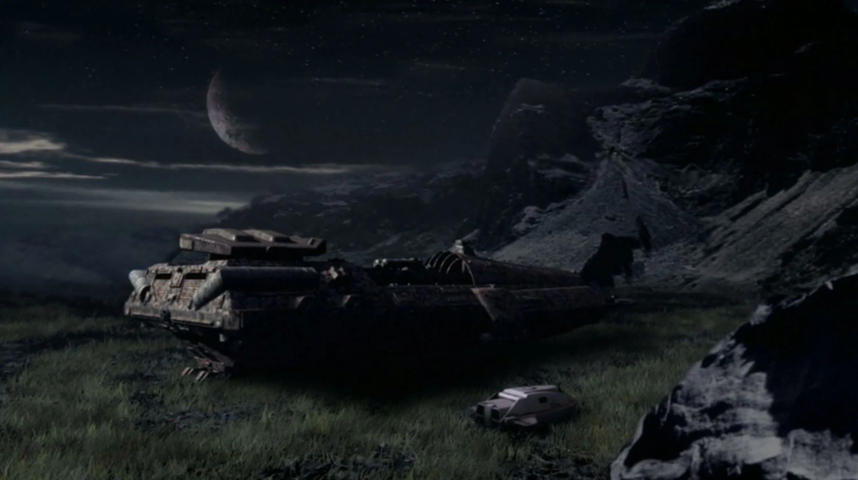 Ein abgestürtzer Frachter unter Kantare-Flagge im Jahr 2151