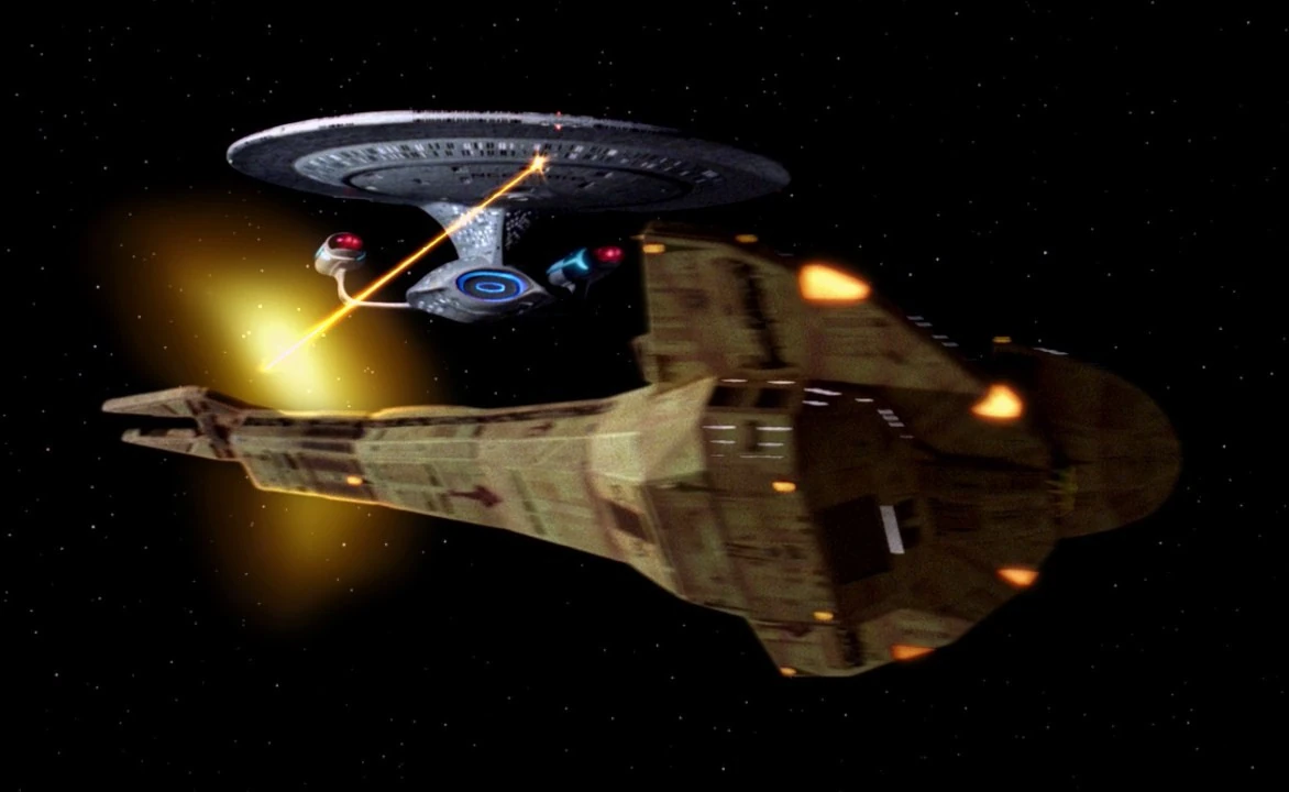 Die USS Enterprise NCC-1701-D hält die USS Phoenix NCC-65420 auf, die Cardassianer jagt.