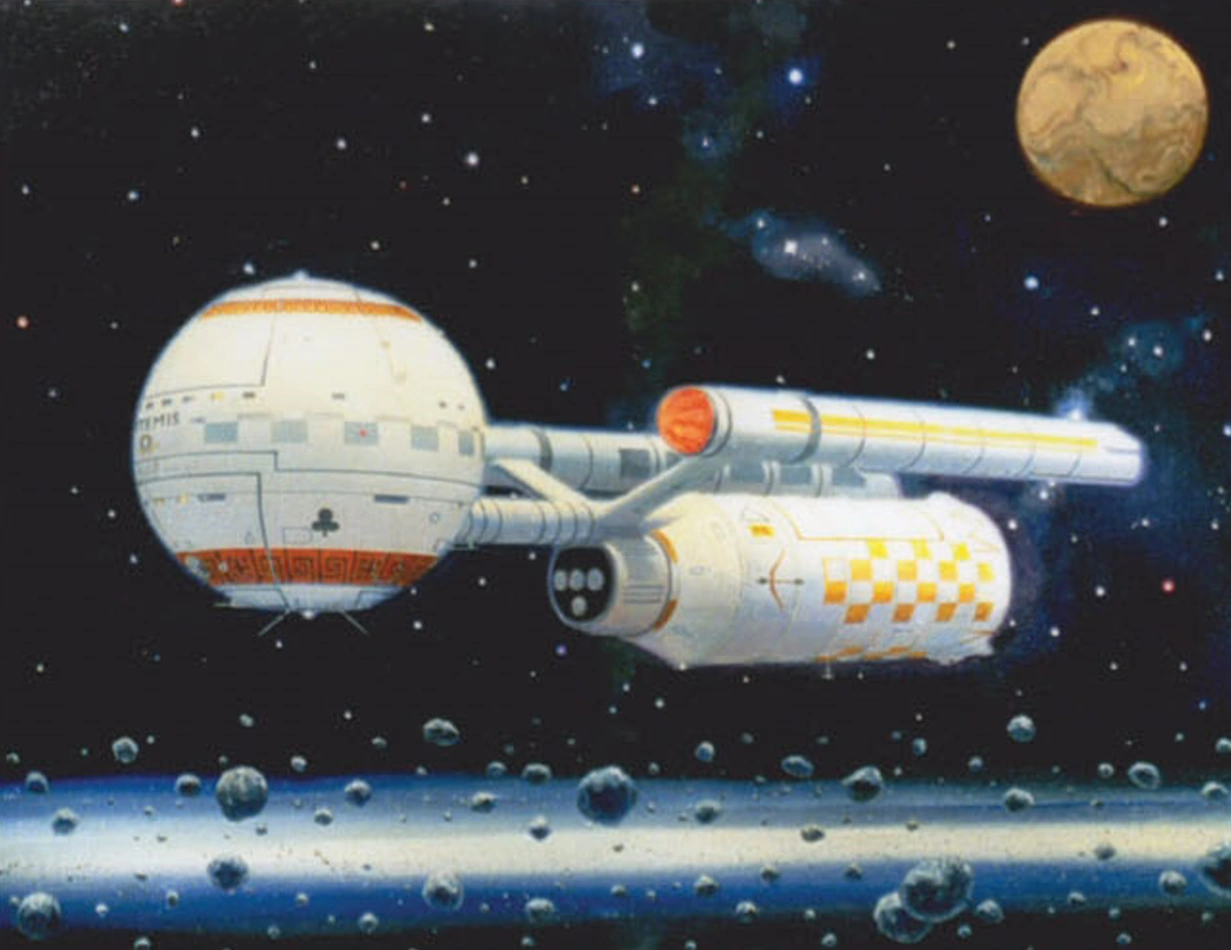 Die SS Artemis ist ein ziviles Raumschiffschiff, dass vor oder während den 2260ern in den aktiven Dienst gestellt wird. Es hat eine andere Hüllenfärbung als gewöhnliche Schiffe der Daedalus-Klasse und getreu ihrem Namen einen Bogen und Speer der Gottheit Artemis auf ihrem Sekundärrumpf.[1]