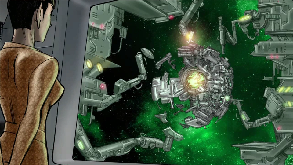 Im Lantaru-Sektor kommt es schließlich zu einer großen Schlacht zwischen T'Uerell und der Föderation, als die Vulkanierin mit der Omega-Sphäre, einem Schiff, in dem sie ein Omega-Molekül zu stabilisieren versucht, in den Kampf zieht. Die USS Enterprise kann T'Uerell aufhalten - die Crew jedoch hat keine Kenntnis davon, dass es sich bei T'Uerells Flotte, um Borgschiffe handelt.[1]