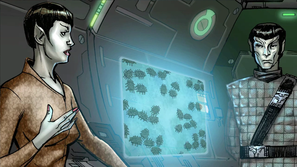 T'Uerell stellt den Romulanern ihre Nanosonden-Forschung vor.