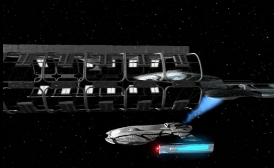 Die Dauntless NCC-71879 wird ins Trockendock gezogen.