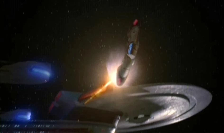 Die USS Lakota feuert auf die USS Defiant.