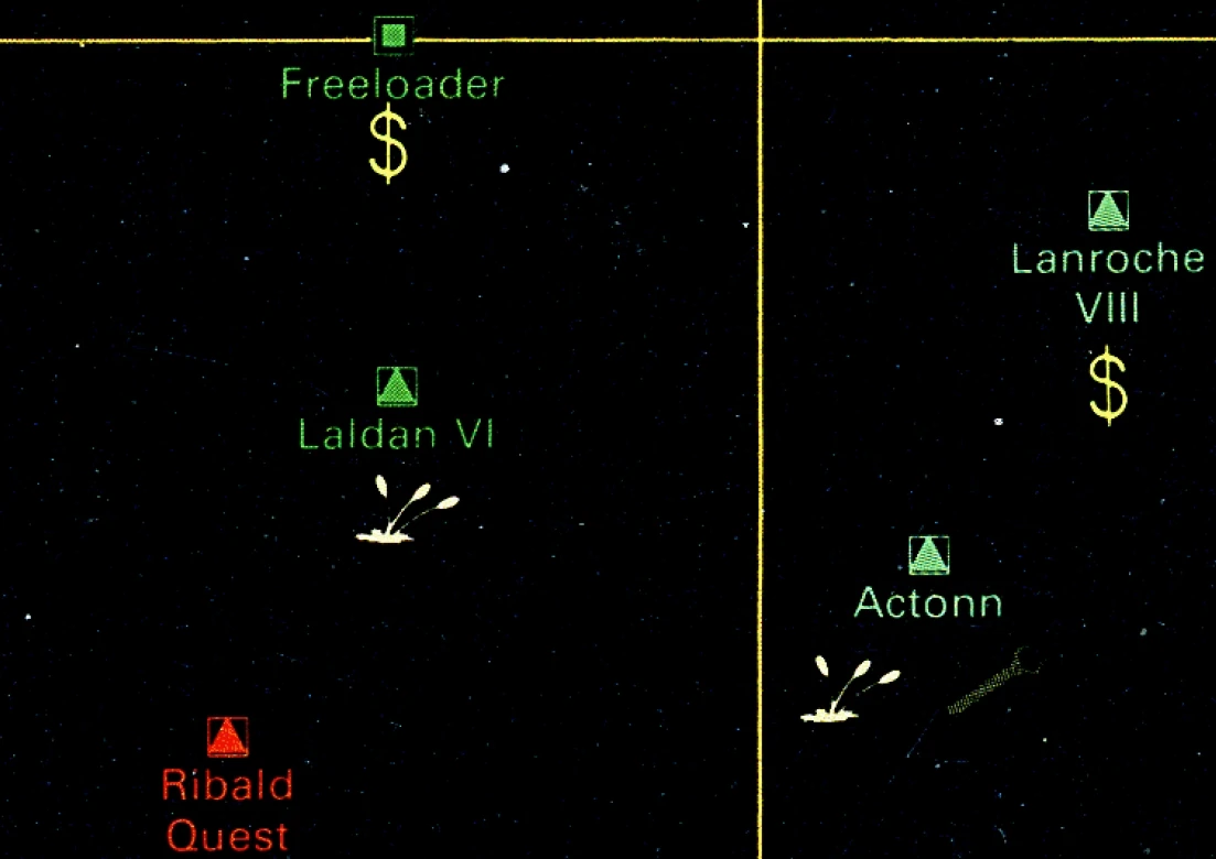 | Systems and planets | 34 Kraol (34 Kraol III) • Aarra (Aarris) • Actonn • Agiirrat (Lantos) • Akers (Akers IV) • Altharra (Altharra IV) • Archibald (Archibald II) • B'Lev (B'Lev I) • Baker's World • Bandage • Beta Origii • Broz • Bu'uli Tev (Bu'uli Tev III) • Canchika • Carwile's World • Chak • Chaniviev • Ch'Lestam VIII • Colil V • Comstock • Currie • Cyclopus • D'Kornam III • D'Latta IV • Derigo • Deerlam • Devotion • Doo III • Epliey • Essaian system (Essai) • Eternity • Farkin • Fan'Cam X • Flitner V • Flood • Fooled Again • Fountainworld • Freeloader • Freeman's Port • Gamon • Ganarra III • Geisling • Gibraltar • Green • H'Lass • Hadalib V • Haven • Hoot • Iovine • Jav VII • Jemison • Jonny's Retreat • K'Kaarr • K'Linsann • K'Tazza VII • K'Tinnam II • Kachtulla VII • Kallendeva • Kannaga • Kinarra • Kuurg Durl IV • Laflin • Lakeland • Laldan VI • Lanroche VIII • Lasustelvan VI • Lazarra IV • Lendis Wavamm III • M'Lavolem • Mandukisivas • Mantiev • Marram IX • Martin's Star III • Mattarra III • Maze • Meadow • Merimee • Morning Garden • Mraarda • Mrang I • Navassa V • New New Aberdeen • New Paradise • New Sahara • New Siberia • Newlin III • Niic IV • Nicolii • North Pasadena • Overlinn • Passarra's Dream • Paxton III • Paxton IV • Penchan II • Pluuh II • Precipice • Polin • Qurellet III • R'Limam VIII • R'O II • Rashile • Remfry • Renarvasam • Ribald Quest • Rockhaven • Satterfeld • Schneiter • Sinnaway (Thisisit) • Stork's Rest • T'Vant (T'Vant VI) • Takanarra (Takanarra II) • Tannine • Turbulence • Turningpoint • Veneradt (Veneradt III) • Verianne (Verianne III) • Wall • Workday • Yel'Camac • Yeartes • Zannaduu (Zannaduu IV) • Zwaalan | |||||||||||||||||||||||||||||||||||||||||||||