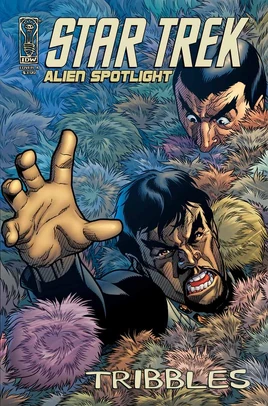 From solicitations: An offbeat one-shot featuring STAR TREK's most unlikely alien race! Welcome to Serjilla IV, an abandoned world completely overrun by Tribbles: friendly, trilling balls of fur that eat constantly and, in the words of Dr. Leonard McCoy, "reproduce at will." When a human freighter, boarded by hostile Klingons, crash-lands on Serjilla, the Tribbles' quiet but lonely existence is shattered. It's a simple situation, really—three desperate humans, a squadron of angry Klingons, and a billion hungry Tribbles. What could possibly go wrong?