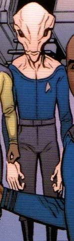 Lieutenant Alnschloss K'Bentayr was a Monchezkin Starfleet officer, serial number SA-890-0404-DB. K'Bentayr was born on the planet Monchezke in the Beta Quadrant and was security officer of the USS Kelvin in the early 23rd century. (TOS website: Starfleet Shipyard; TOS movie: Star Trek)