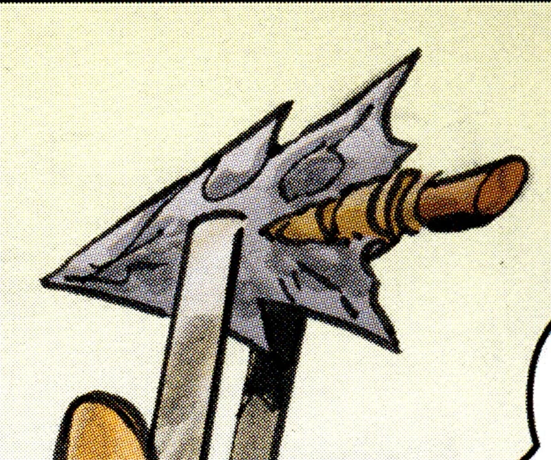 An effective design was to make the point barbed. Medical treatment for an arrow injury once involved having to push the arrow all the way through the body. In the 23rd century, more advanced techniques were available. (TOS - Crew comic: "Shadows of the Past")