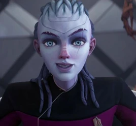 Asencia, also known as The Vindicator, was a female Vau N'Akat and member of The Order who hailed from an alternate future in the 25th century. Once an innocent woman, after the disastrous first contact between Solum and the United Federation of Planets triggered a civil war that had cataclysmic effects on her civilisation, Asencia was one of a hundred survivors that travelled back in time to retrieve the USS Protostar and the living construct that the Vau N'Akat had outfitted to obliterate Starfleet and rewrite history. To assist this search, Asencia infiltrated the spacefaring armada that she hated as a Trill ensign onboard the USS Dauntless beneath the command of Vice Admiral Kathryn Janeway.