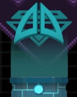 The insignia of Battle Group 2 was blue, and could be placed on a banner. The logo consisted of a rounded trapezoid, split in the middle, in front of a trapezoid on top, and a larger, downward-pointed triangle, with both components being stretched horizontally. (ST video game: Trexels mission: "Skirmish")