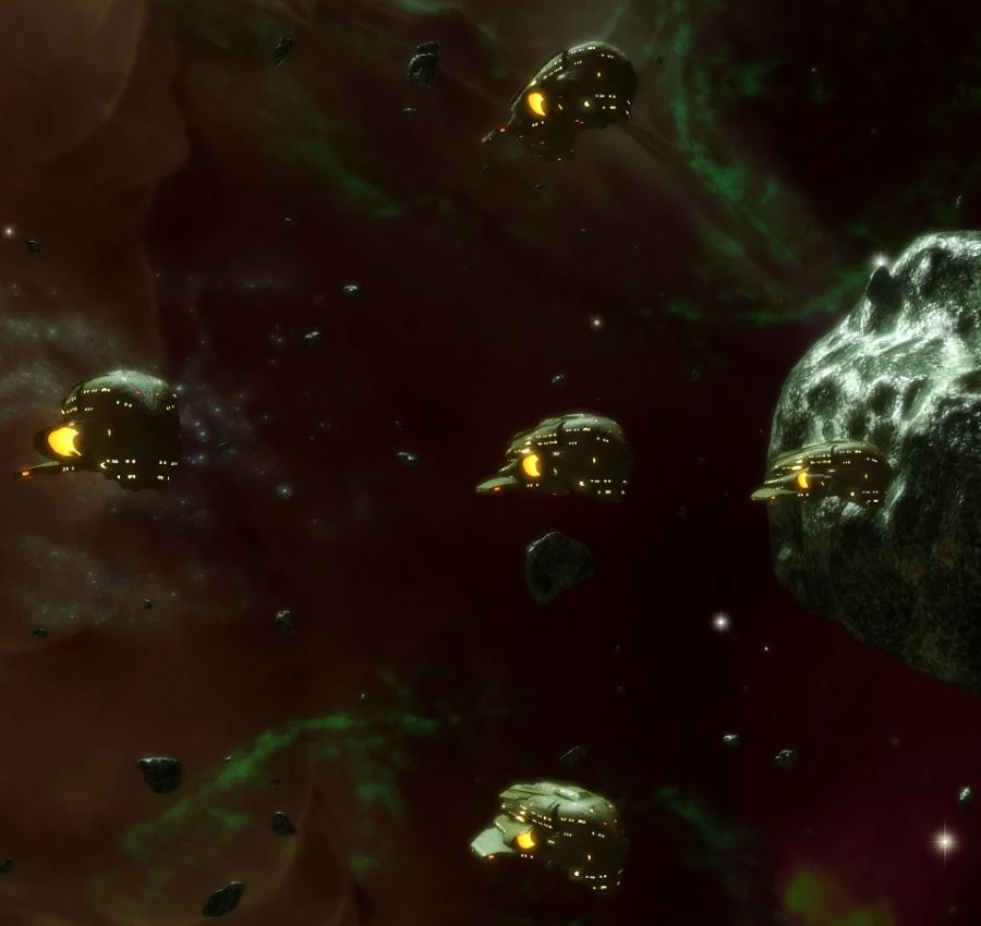 In the year 2410, One star admiral Tuvok of Alliance High Command dispatched the USS Rhode Island to the Bremark system to discuss membership in the Delta Alliance with the Kazon. Captain Harry Kim had experience with the Kazon and found them neither trustworthy nor amenable to cooperation. The parties met in an asteroid field.