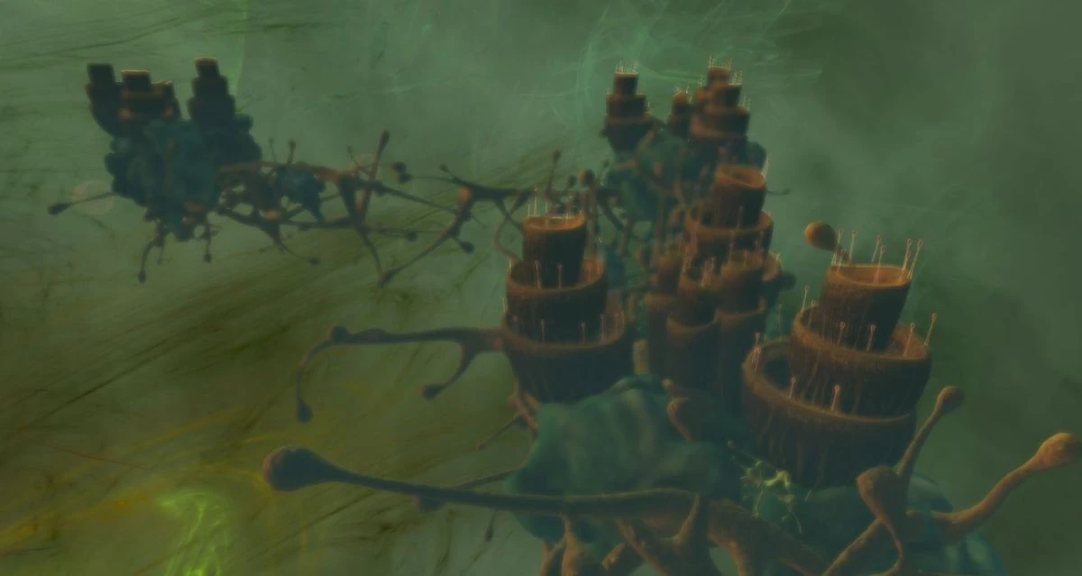 A blue quantum singularity rift had opened in the vicinity of Shipyard Gamma, potentially allowing the Gamma and the proto-planet killers to enter the galaxy. Tuvok's task force cleared all shipyards from their defending vessels, encountered the Borg remains and lend medical aid to a nearby Gekli pod following their arrival in fluidic space. The allied task force destroyed the defending bioships, including newly hatched Undine larval ships, while a commando infiltrated the chimneys of each shipyard, forcing open their maws to reveal their proto-planet killer hatchlings in the process. Following the elimination of the three proto-planet killers and all other nearby Undine ships, the Khitomer Alliance task force departed Bubbling Bay and returned to the primary universe. (STO - Task Force Operation mission: "Viscous Cycle")