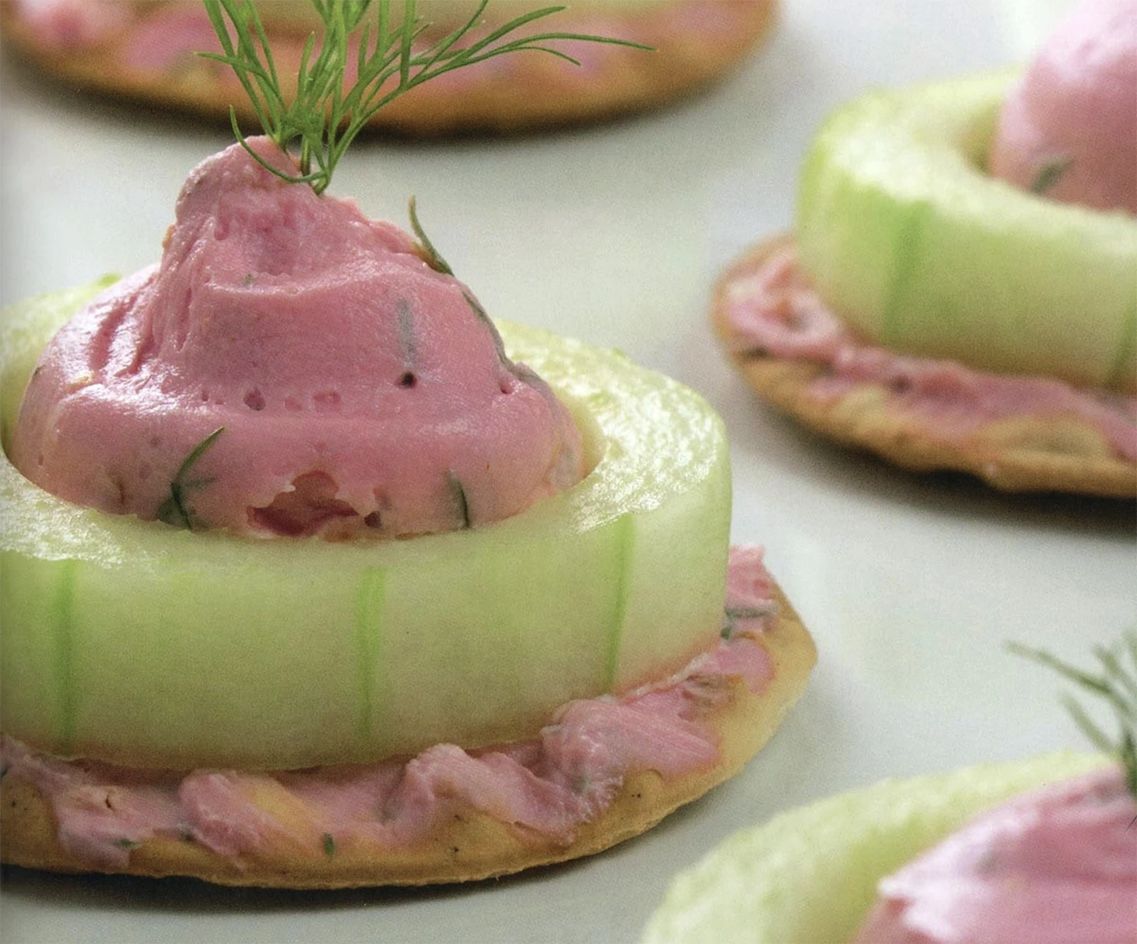They were an appetizer native to Risa that reminded Risians of particular pink-flowering lilies found at the Bularian Water Gardens. The canapés were considered indulgent, elegant, and served at special occasions. Each canapé was made with a cracker, cucumber slice, and whipped topping. At diplomatic functions, they might be topped with caviar. An approximation of the topping could be reproduced on Earth using cream cheese, butter, mustard, beet juice, dill, and salt. (ST reference: The Star Trek Cookbook)