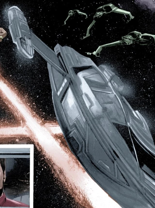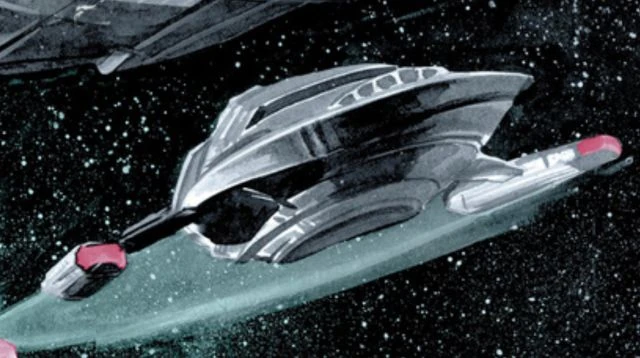 Following an investigation into the Empire's narrow supply lines and the interrogation of a Bolian supplier aboard the Enterprise, Captain Jean-Luc Picard loaned his enforcer Commander Data the Calypso for further investigation. The Calypso left the Enterprise and successfully evaded a trio of Klingon-Cardassian Alliance B'rel-class birds-of-prey at the edge of the Sol system. (TNG - Through the Mirror - Ripe for Plunder comic: "Chapter One")