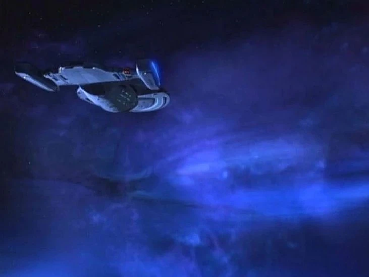 The Avenger enters a cerulean nebula in Sector 441.