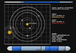 - Ceti Alpha was part of the battle map of Conquest. The novelization of The Wrath of Khan by Vonda N. McIntyre referred to the system as its real-life scientific name Alpha Ceti until the work was reprinted in Duty, Honor, Redemption in 2003. In TNG video game: Birth of the Federation, the orbital configuration of the game map star systems was randomly generated each time a new game started.