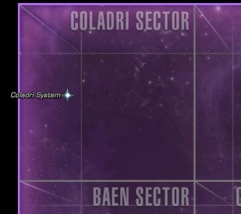 In the block of twenty sectors accessible to the Alliance, the Coladri sector marked the most rimward corner, and thereby shared a border with only two sectors. The Kurill sector sat to Coladri's "east", and the Baen sector to its "south", with the Callinon sector positioned diagonally across Coladri and between Baen and Kurill. (STO - Gamma Quadrant mission: "Storm Clouds Gather")