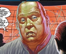 In the year 2374, during the Dominion War, Connolly oversaw a major offensive which was not going well. He also sent Captain Jean-Luc Picard and the USS Enterprise-E to negotiate a alliance with the Gorn Empire. Connolly was then contacted by Picard's second officer, Lieutenant Commander Data, who informed him of a coup on the Gorn homeworld and it's assault into Federation space. Despite this, Connolly was unable to send a response to help the Enterprise. He told Data to use diplomacy or phasers to make it work and that he was on his own. (TNG comic: "The Gorn Crisis")