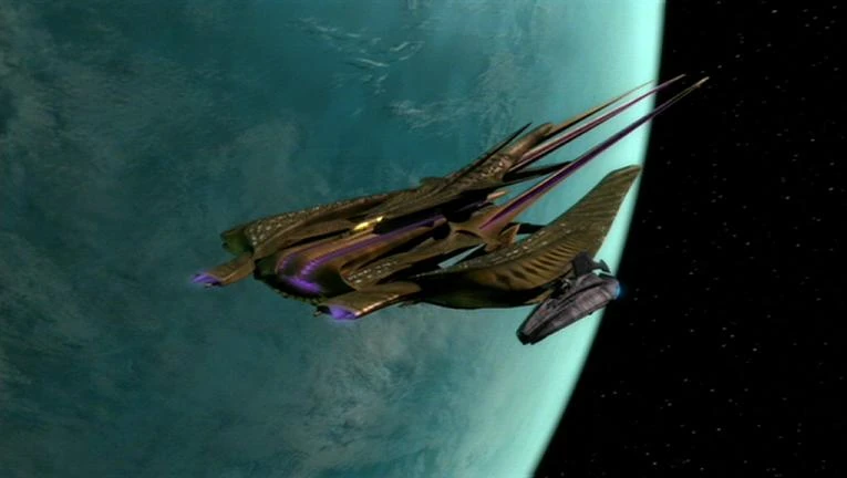 Later Commander Dolim commanded one of these vessels alongside the Xindi superweapon during the Xindi attack on Earth, and was challenged by Commander Thy'lek Shran aboard the IGS Kumari. Shran bought time for Captain Jonathan Archer, Lieutenant Malcolm Reed, Ensign Hoshi Sato, and a MACO squad to board the superweapon and draw it away from Earth. Dolim transported to the superweapon to regain control, weakening his warship's shields enough for the Kumari to destroy it. (ENT episode: "Zero Hour")
