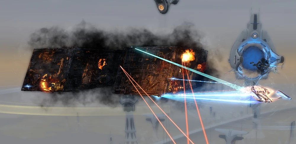 In this universe, the Control Borg were involved in a war of assimilation with the Iconian Alliance and the survivors of the galactic powers. In the year 2411, the Control Borg Queen Tasha Yar and her forces breached the Solanae Dyson Sphere, the last bastion of the Iconians. After ships from the Khitomer Alliance and Aetherian Concordium arrived there through an Iconian gateway from the primary universe, Control assimilators engaged them in battle. The Allies destroyed the Control probes and other Control Borg ships.