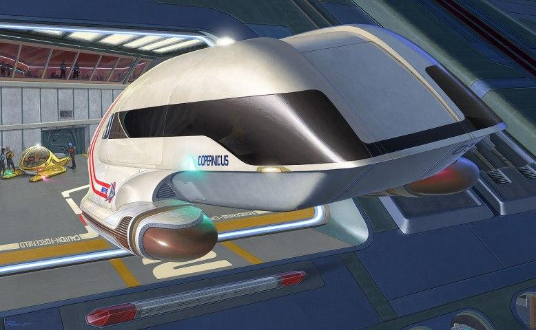The shuttle was assigned to the USS Enterprise-D in the early 2360s decade, when that starship was commissioned. Copernicus was the latest of a series of shuttles to bear that name, with previous examples having been assigned to the earlier USS Enterprise and USS Enterprise-A.