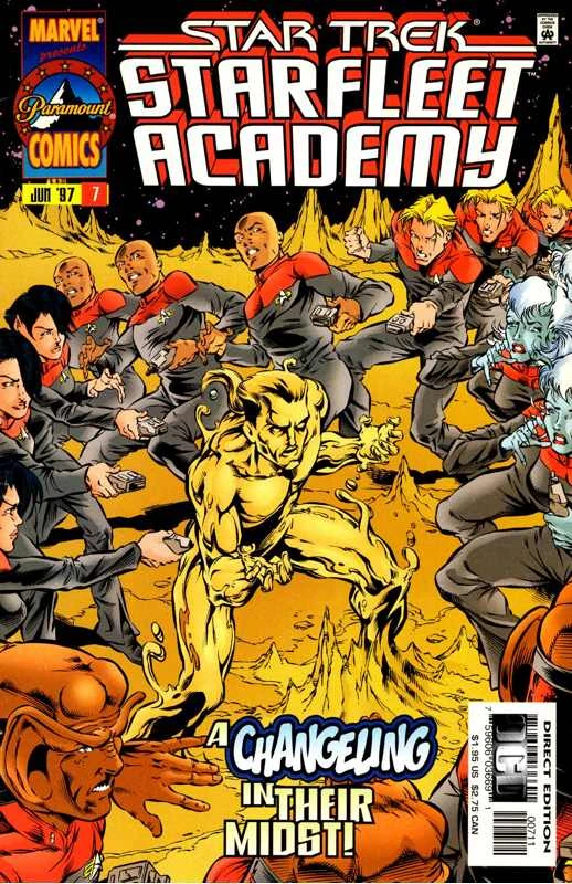 An attempt on Astrun's life was made shortly after his arrival by a Changeling who had infiltrated the Academy. The shape-shifter had assumed the form of Astrun's squad-mate Nog in an attempt to divert suspicion from itself. However, Astrun was able to send Nog a telepathic warning about his attacker's true identity, and soon after recovering from his wounds helped Omega defeat to the Changeling while working as a part of a team for the first time. As Astrun probed the Changeling's mind, Astrun began to see the details of a complex Dominion plot against the Federation, but the Changeling took his own life before allowing Astrun to make sense of what he saw. (SA comics: "Passages", "Hide and Seek")