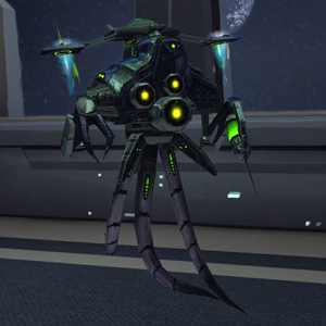 One piece of technology commonly used by the Elachi were drones that were insectile automated machines. These were capable of being deployed on guard assignments where they were at times used to protect the alien beacons from outside interference. A more aggressive use of such drones were deploying them in numbers during their attacks on enemy colonies. The drones floating nature meant that they could fly across their environment and latch on to targets whereupon the subjects were forcibly taken back to their Elachi creators. (STO mission: "Virinat, Invaded")