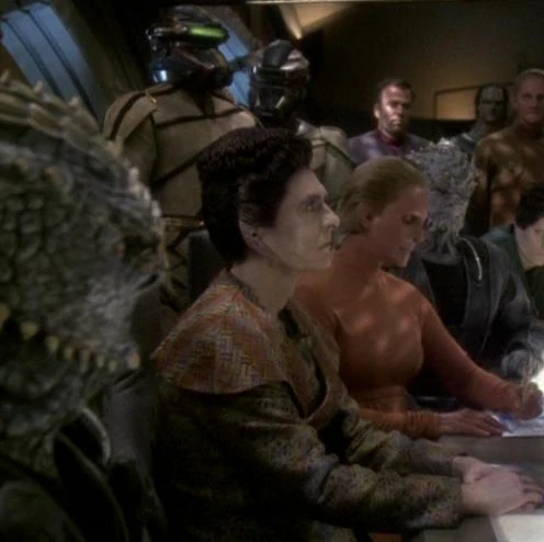 Distrusting the Cardassians, she made an alliance with the Breen, which had the result of forcing the Federation out of the captured Cardassian Chin'toka system. (DS9 episodes: "'Til Death Do Us Part", "Strange Bedfellows", "The Changing Face of Evil")