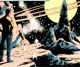 In 2269, Spock first detected this world aboard the starship USS Enterprise. Zhyopha approved its use as a battle site between his space beings and Captain James T. Kirk. On the surface, Kirk watched as the space beings devoured all life on the surface within just a few hours. In their ravenous hunger, they then destroyed each other. (TOS comic: "This Tree Bears Bitter Fruit")