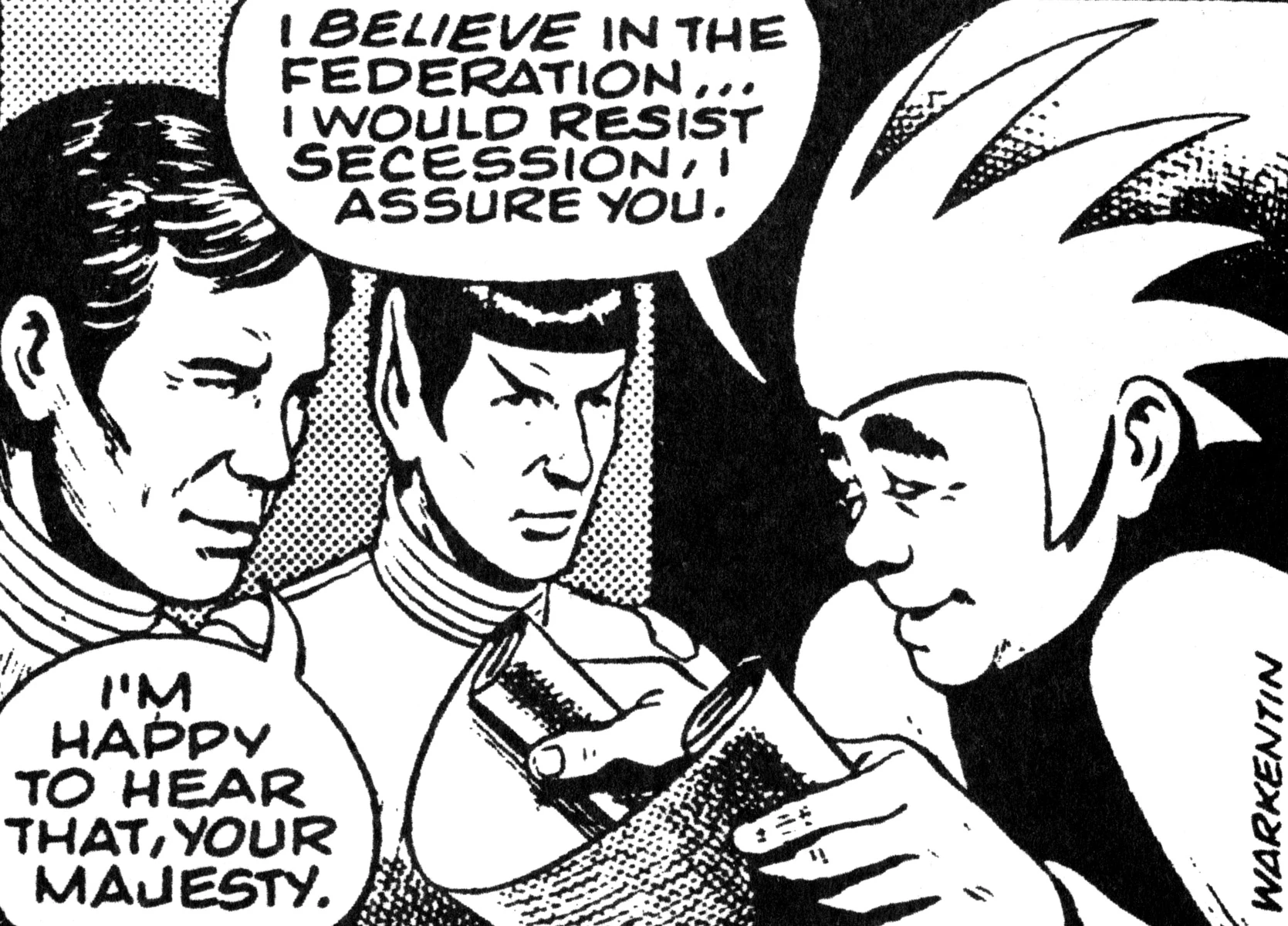 "Heads of State" is a TOS comic strip. It is the seventh story in the US Comic Strips series, published in 60 daily installments by the Los Angeles Times Syndicate in 1981. The story was set after TOS movie: The Motion Picture, depicting events from Captain Kirk's second five-year mission aboard the refit USS Enterprise. In this story, Kirk must avert war with the Klingon Empire when a Federation world threatens secession.