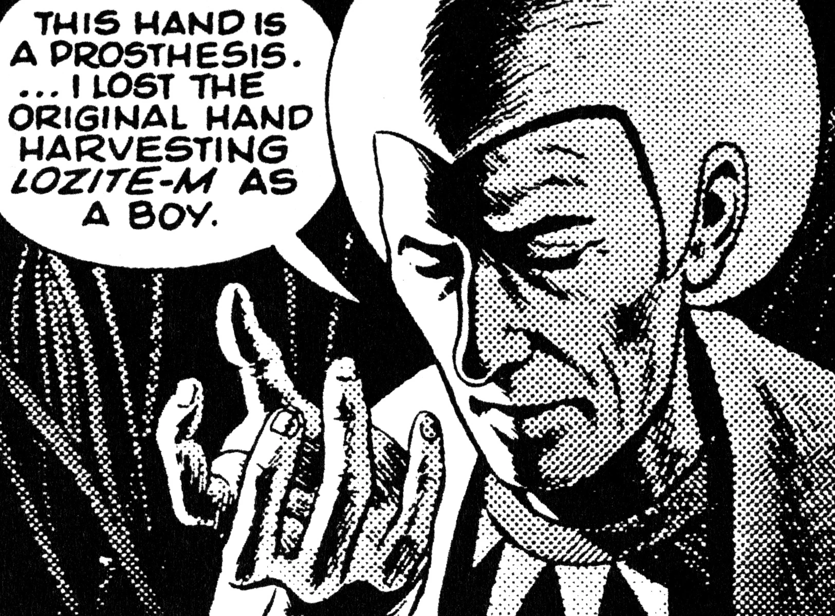 Guards catch the landing party at the base of the imperator's cloister building, but Dykranus spots them and asks them to be brought up. Seemingly unaware that he'd previously met them, he shows them plans for a celebration of the planet's 50 years as a loyal member of the Federation, then falls asleep again. Suspecting schizophrenia or twins for his personality changes, Chapel and McCoy ease off his headdress to reveal he has two heads. The other head awakes, manic and reactionary, and threatens the group with a branch of lozite-M. But he stumbles and falls, and the branch severs one of his heads.