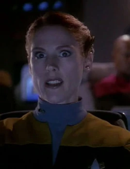 In 2372, she served as weapons officer on the bridge when Benjamin Sisko took the USS Defiant into the Cardassian Union to save the members of the Detapa Council from the Klingon invasion. She also operated and monitored the Romulan cloaking device. Blake was injured when several Birds-of-Prey attacked the Defiant when it came to the aid of the CDS Prakesh. Commander Worf assumed control of her station. (DS9 episode & novelization: The Way of the Warrior)