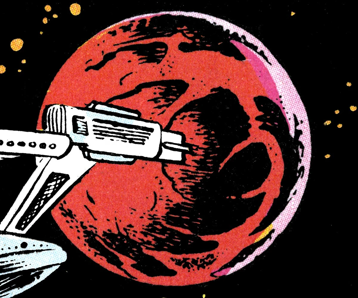 USS Enterprise visited the planet in 2274 to negotiate for mining rights to dilithium and pergium. The ruling council arranged for the crew to have clearance to experience all the amenities. (TOS comic: "All the Infinite Ways")