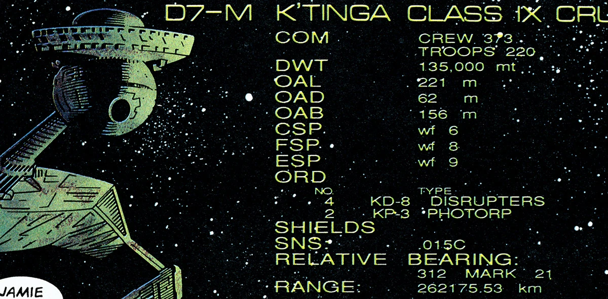 In 2268 the ship was commanded by captain Khod, it was dispatched to the planet Atraz, located in the Federation-Klingon Neutral Zone to intercept the USS Enterprise while it was engaged in a rescue operation. (TOS novel: Lost to Eternity)