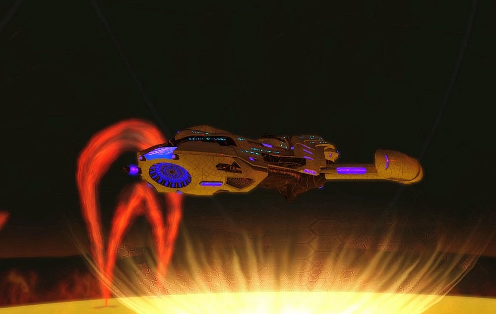 The three ships returned to Dyson Joint Command for a meeting with Subcommander Koal. (STO - Solanae Dyson Sphere mission: "A Step Between Stars")