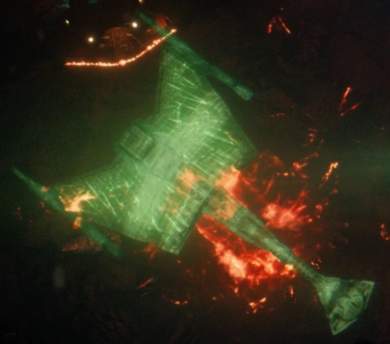In 2258[4], L'Rell led the Klingons participating in the Battle near Xahea at Zero Point[5] alongside Kelpien and Starfleet forces against the Section 31 fleet, controlled by the rogue artificial intelligence Control, from aboard the K't'inga. L'Rell summoned a Na'Qjej-class cleave ship to aid the allies in the battle. The allies were victorious against Control. (DSC episode: "Such Sweet Sorrow, Part 2")