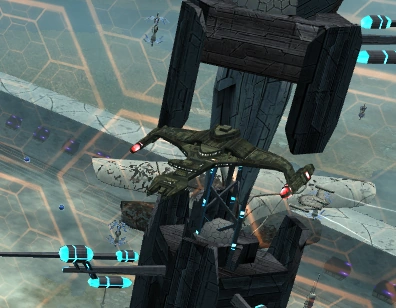 In 2409 the Quv Patlh was outfitted as a minelayer and assigned to Dyson Joint Command in the Solanae Dyson sphere to help maintain the DJC's defense perimeter. Her captain reported persistent problems keeping the minefield running due to attacks by Iconian probes and Obelisk swarmers, which tended to set off the mines. (STO mission: "Allied Zone - Minefield")