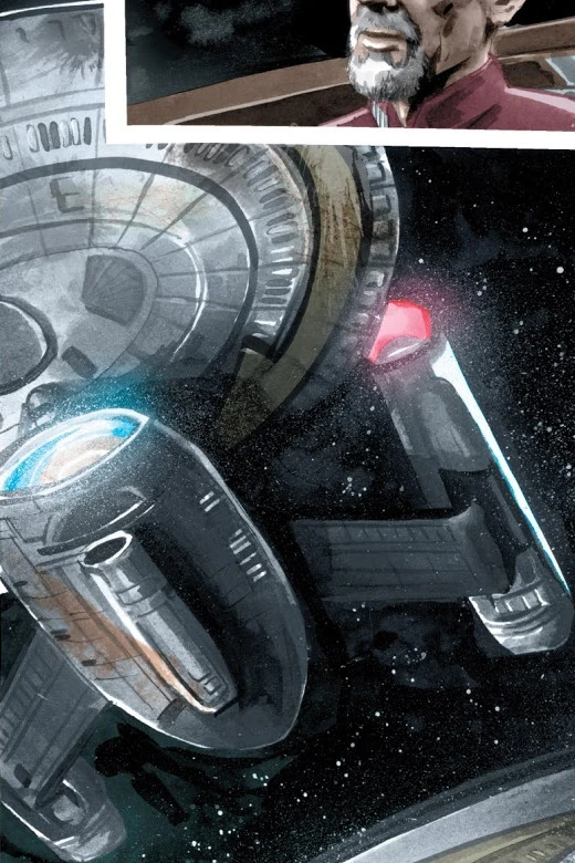The Arnold was assigned to a task force, under the command of Walker Keel onboard the Ambassador-class ISS Horatio and along with the Constellation-class ISS Stargazer, sent to recapture the ISS Enterprise-D that had been commandeered and stolen from drydock by Captain Jean-Luc Picard, the former commander of Stargazer, and loyalist members of his crew. When the task force caught up with the Enterprise, the Galaxy X-class starship was easily able to weather their combined attack and inflict significant damage on the Horatio and the Stargazer in return. However, the engagement was interrupted by the arrival of an Alliance fleet consisting of numerous Galor- and Keldon-class starships, as well as Klingon bird-of-preys. When Picard refused an order to surrender from Gul Danar, commander of the fleet, Danar had the Arnold destroyed in a show of power. (TNG - Mirror Broken comics: "Issue 4", "Issue 5")