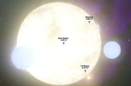 The Idran system's primary was an F class supergiant star. The two secondary stars were O class stars, at least one of which was a dwarf. Orbiting the stars were eight planets and an asteroid field. (DS9 episode: "Emissary"; ST reference: Star Charts; DS9 - Mission Gamma novel: Lesser Evil; DS9 video game: Crossroads of Time)