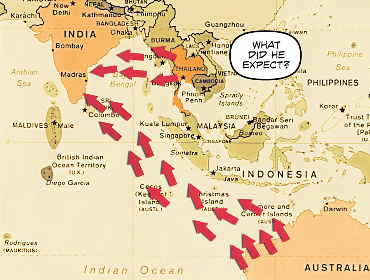 The Indian Ocean on its south, west and east was named for the nation. (Decipher RPG module: Worlds)
