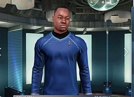 | 0718 • Amos • Boma • Chapel • Chapin • Chekov • Cordry • Mae Darwin • Froman • Gaetano • Galliulin • Hannity • Hawkins • Hendorff • Jae • Jeanine • Jin • Kai • Keenser • Kelso • Kirk • Kyle • Latimer • Leslie • Madeline • Marcus • Martine • McCoy • McKenna • Moto • Mitchell • Olson • Pike • Puri • Rand • Satine • Scott • Sir Olden • Spock • H. Sulu • Y. Sulu • Syl • Tomlinson • Tyvanna • Uhura • Wadjet • Zahra • unnamed USS Enterprise (Kelvin timeline NCC-1701) personnel | ||