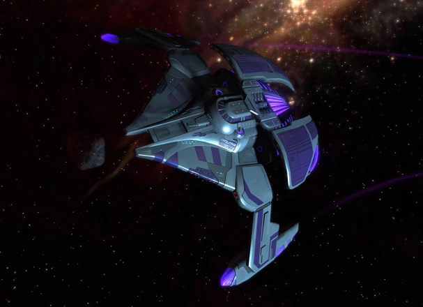 An upgraded version of the Jem'Hadar attack ship, the Jem'Hadar strike ship was developed by the early 25th century. It possessed incredible maneuverability and was quite durable for a ship of its size. (ST video game: Star Trek Online)
