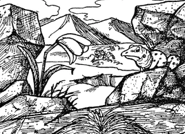 The world had a breathable atmosphere. Flowering plants and small reptilian animals lived on the surface, which featured mountains, valleys, caverns, and lakes. Fish and dangerous, man-eating octopus-gorilla creatures resided in its aquatic environments.