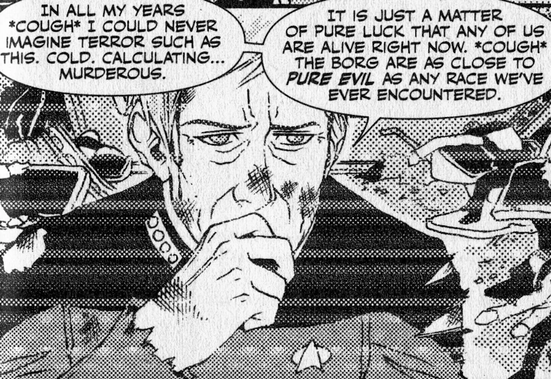 In 2379, Amasov attended a briefing on a new Borg attack, in which they used a time wave to assimilate all races throughout time. The group of Starfleet officers, including Janeway and Picard, discussed the Borg's objectives and formulated a plan to stop them. (TNG comic: "Alien Spotlight: Borg")