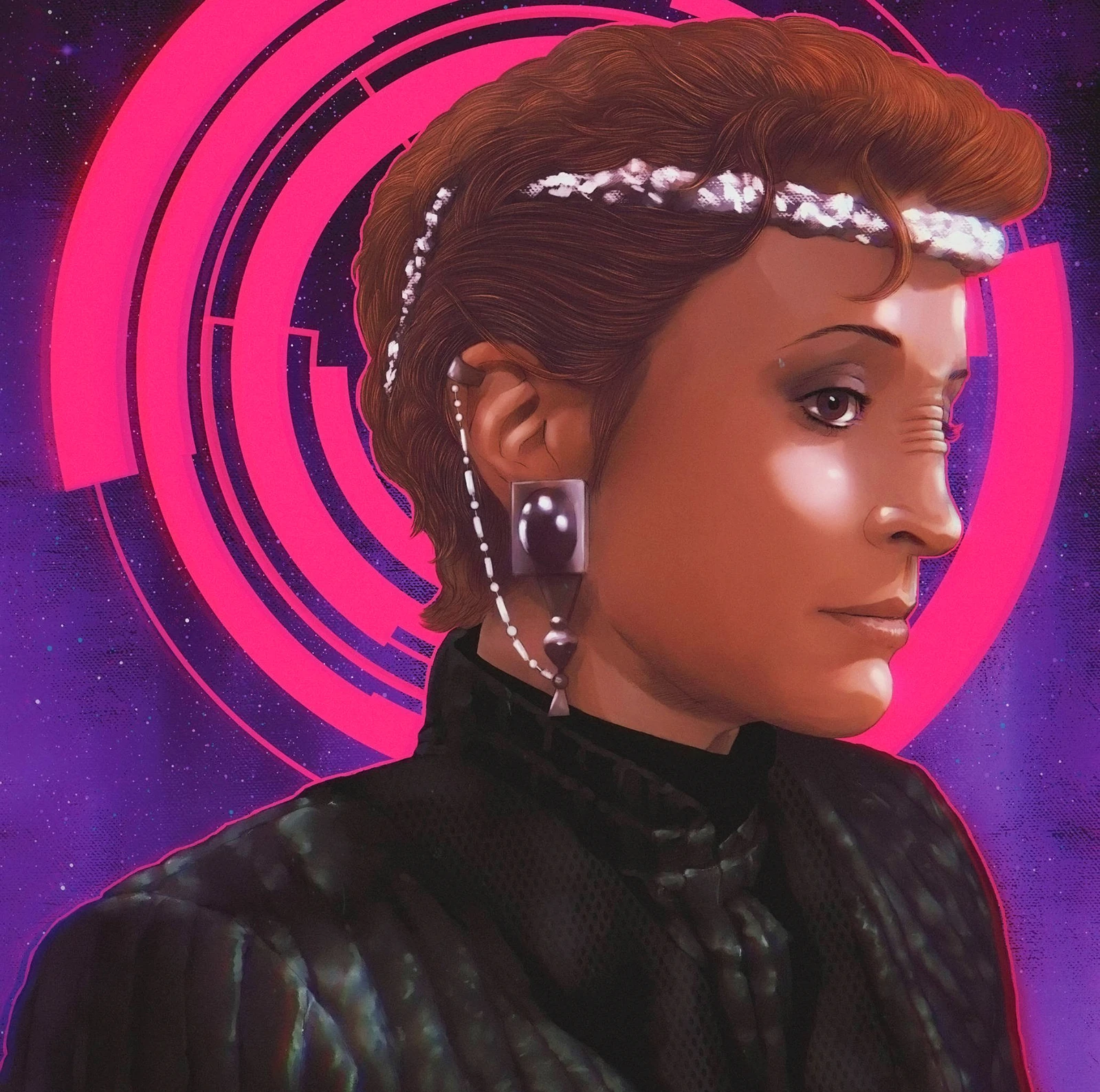Shortly before her encounter with her primary universe counterpart, Intendant Kira was elected Overseer of the Alliance during a conclave on Khitomer, giving her authority over trade matters and placing her directly beneath Regent Worf. The appointment drew the ire of Intendant Deanna Troi of Betazed, who encouraged First Minister Winn Adami to assassinate Kira. Winn's associates in The Circle hired Annika Hansen to assassinate Kira, unaware that she was an agent of the Obsidian Order. On orders from her superior, Enabran Tain, Hansen revealed the plans to Kira and subsequently assassinated Winn on her behalf. (ST novel: Dark Passions, Book Two)