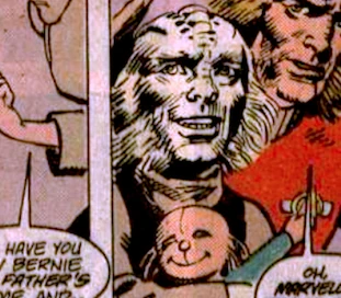 Konom and Bryce took in Kobry, who was very child-like despite his age. Bryce, refusing to call him "moron", gave him the name "Bernie" after the nickname of her father, Andre Bryce.