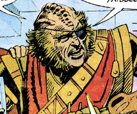 In the 2280s, he worked on Magellan's World, becoming a regular patron of the Star Bar. He was friends with provisional governor Mace Magellan, often brawling and drinking with him. He claimed women were attracted to his eye patch, otherwise he would have a cyber-eye, despite it leaving him vulnerable in personal combat. (TOS comic: "Maggie's World!")
