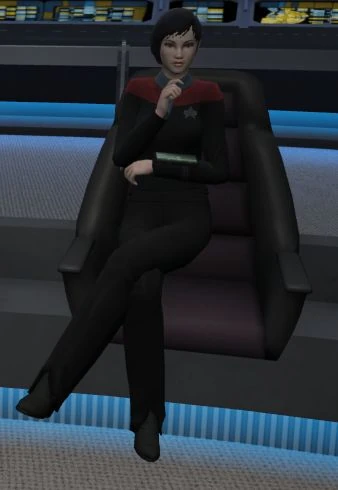 By 2410 she had been promoted to lieutenant commander and was assigned to work in the Delta Quadrant under Rear Admiral Tuvok aboard USS Voyager. When Tuvok fought the Eric Cooper Undine inside a mind meld, she was duplicated inside the meld's version of Voyager, wearing a 2370s-era Starfleet tactical officer uniform. This engrammatic duplicate turned hostile and attacked Tuvok and an Allied officer. (STO - Delta Quadrant missions: "Mindscape", "Alliances")