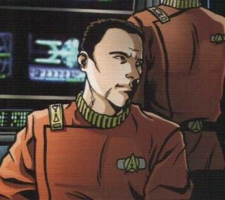 Early in the 2290s, Lyon was assigned to the USS Excelsior as its navigator. (Captain's Log comic: "Sulu")