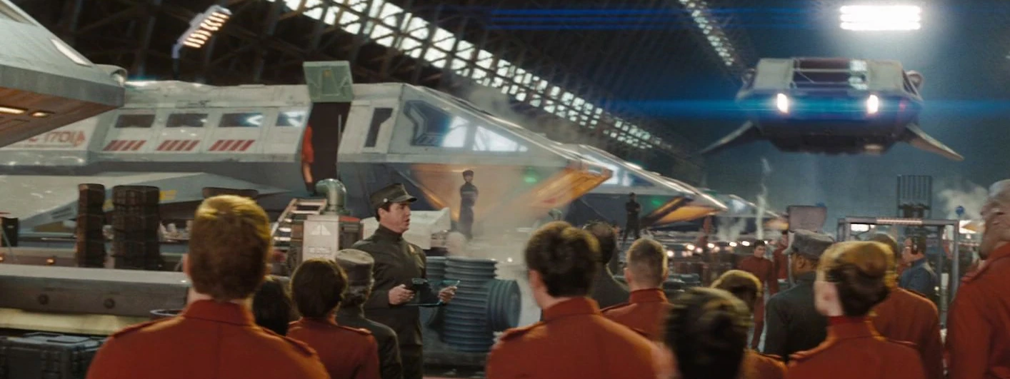 In 2258 numerous military shuttles ferried Starfleet cadets from Hangar One on Earth to their postings on starships. A short time later Captain Christopher Pike piloted the USS Enterprise's Shuttle 89 to surrender himself to the Narada, in the flight he used the shuttle space jump launch capability to deploy Enterprise personnel to disable the Narada''s plasma drill. Shortly after this Shuttle 78072, assigned to the Delta Vega outpost, was modified by Spock and Scotty to successfully accomplish transwarp beaming. Not long after this Spock encountered the prime reality's Spock standing next to a military shuttle in a hangar on Earth. (TOS movie & novelization: Star Trek)